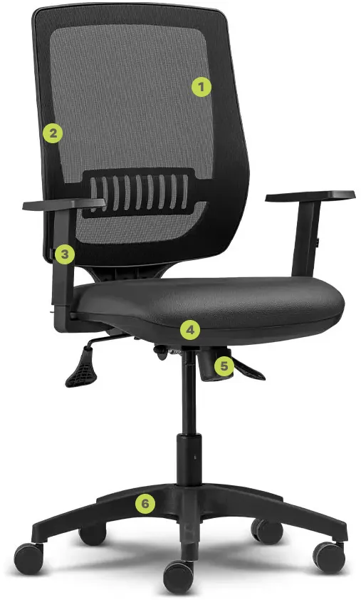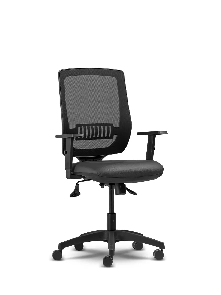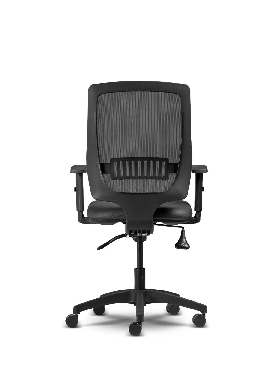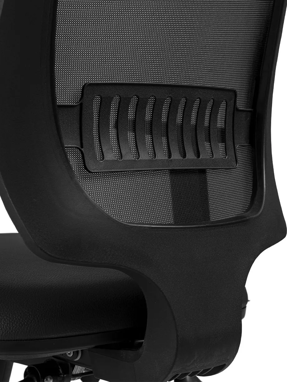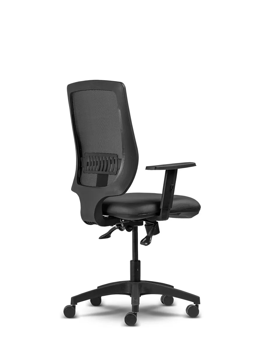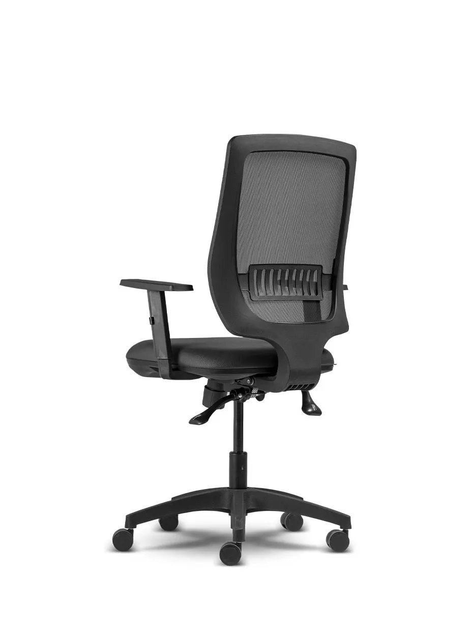 injetada em nylon com fibra de vidro, o encosto proporciona adequado apoio á região lombar do usuário